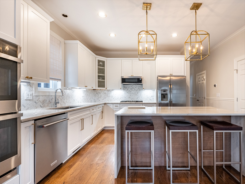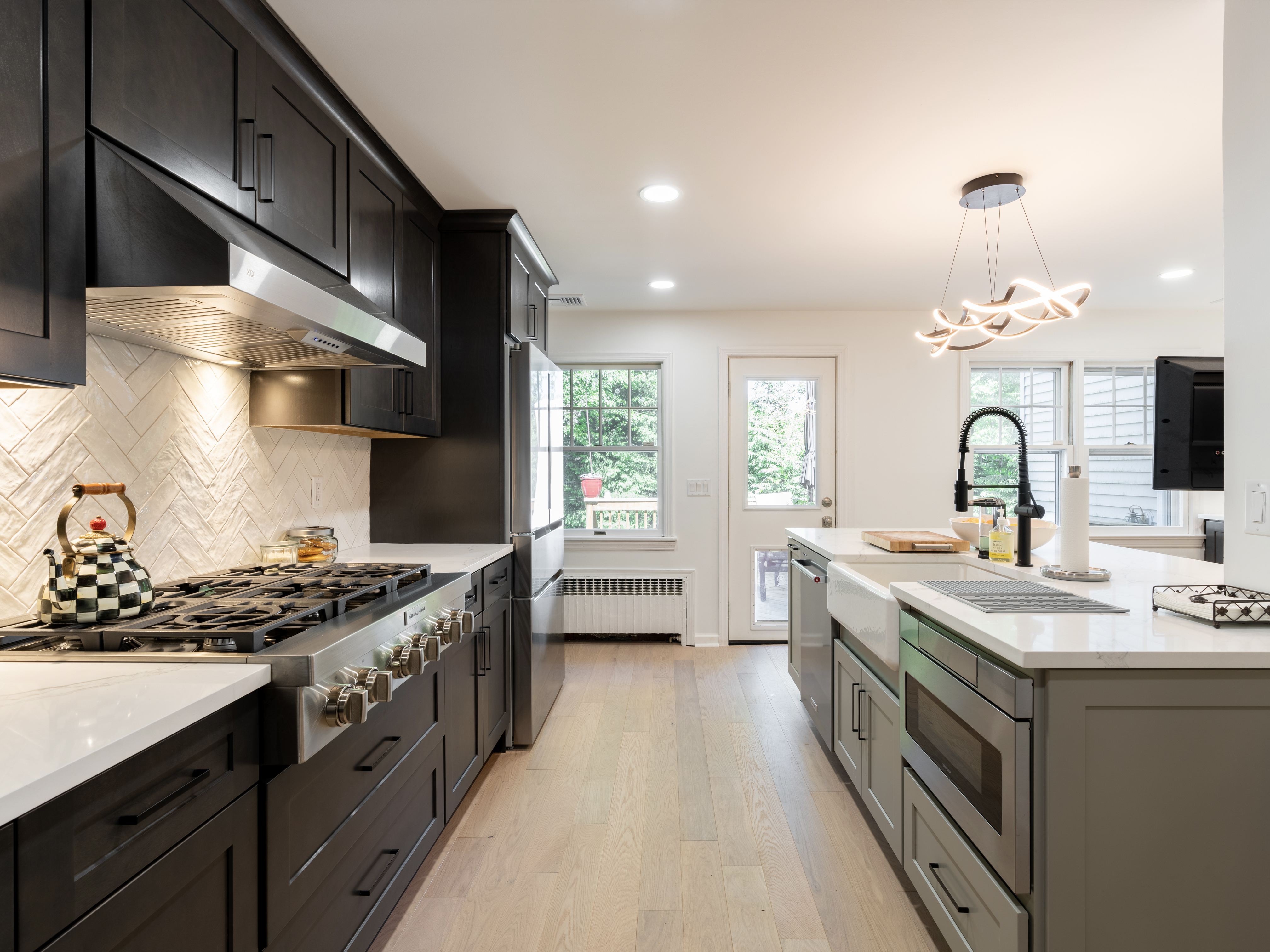 Cabinet refacing replaces old doors, drawer fronts, and hardware with stylish, modern alternatives, while the existing cabinet boxes remain intact. This approach is cost-effective, less disruptive, and completed in far less time than a full renovation. Choose from a range of finishes and colors to match any taste.