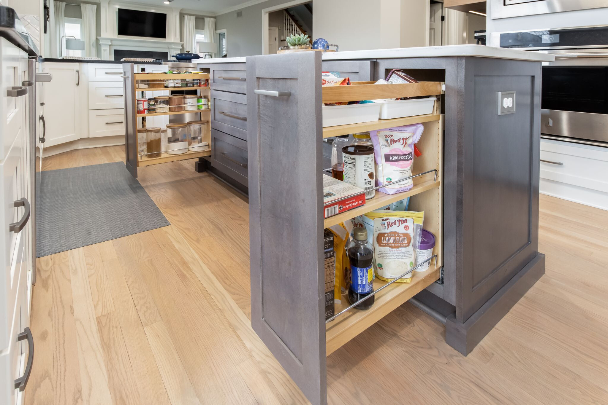 Declutter and organize with tailored storage options such as pull-out trays, lazy Susans, drawer organizers, and vertical dividers.